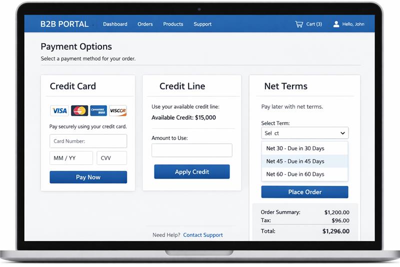 Net terms at checkout Fully supported Limited or unavailable
